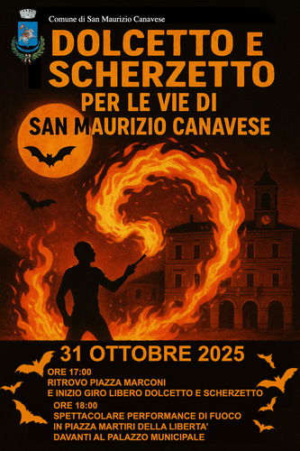 Dolcetto e scherzetto per le vie del paese! È l'evento dedicato ai bambini e ai ragazzi nel pomeriggio di venerdì 31 ottobre. L'appuntamento è in piazza Marconi alle ore 17 per il giro libero in paese. Gran finale alle ore 18 nei giardini del municipio con una spettacolare performance di fuoco.