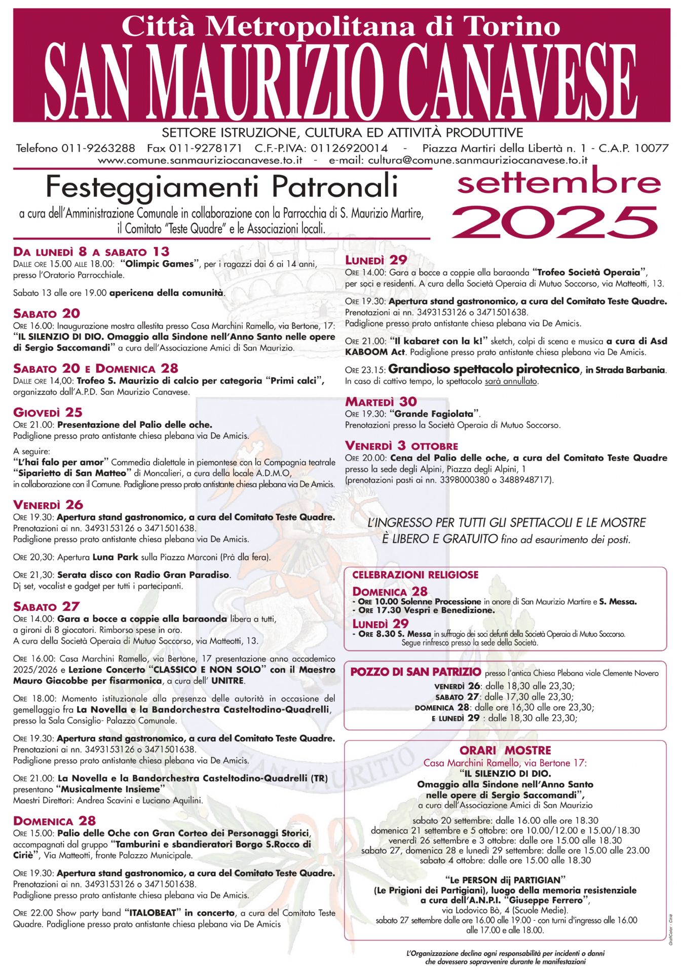È tutto pronto per la Festa Patronale 2025, organizzata dall'Amministrazione comunale in collaborazione con la parrocchia di San Maurizio Martire, il comitato Teste Quadre e le associazioni locali.