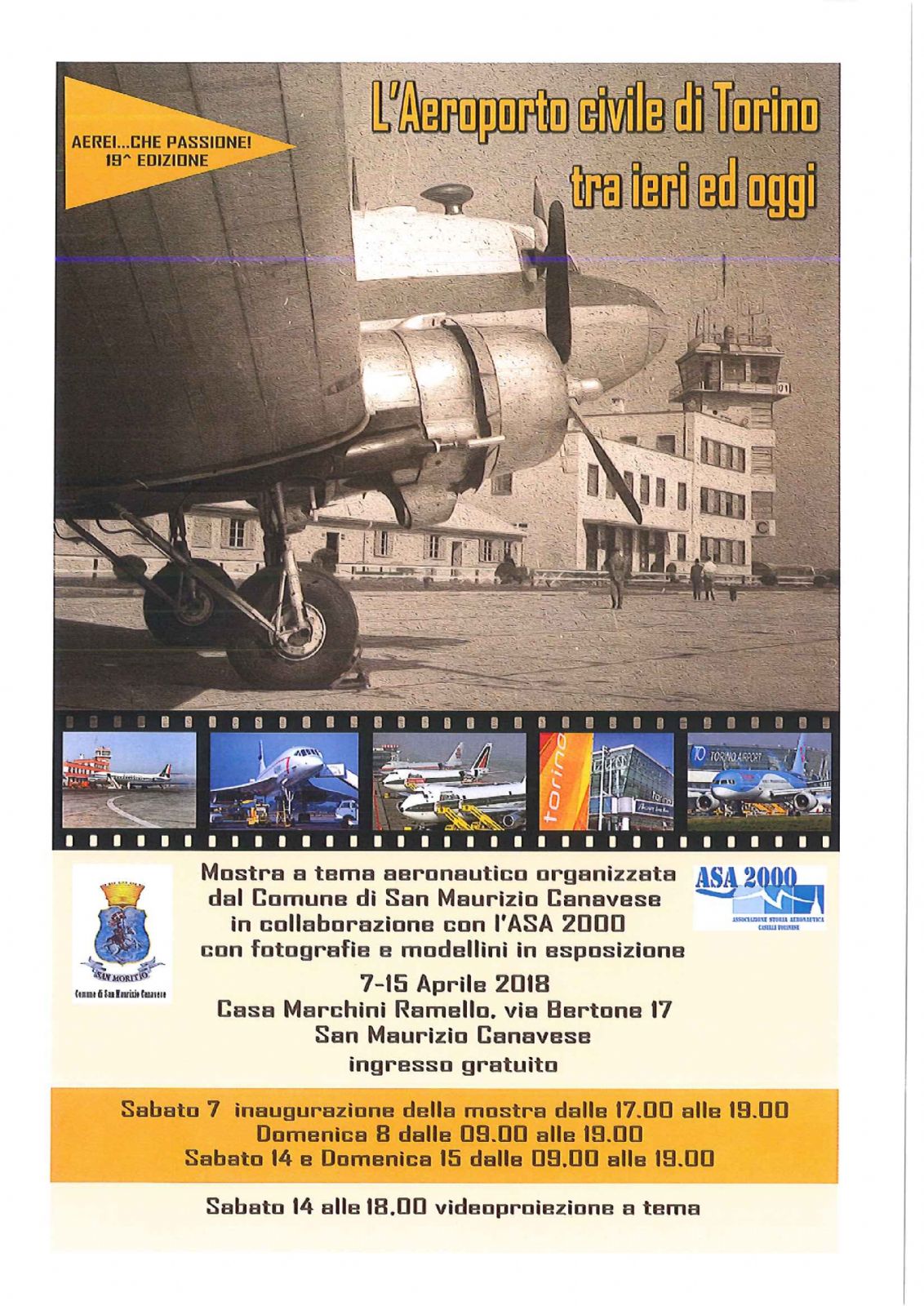 Dopo il successo ottenuto nel 2015, torna nei locali di Casa Marchini Ramello, a San Maurizio Canavese, la prestigiosa mostra sulla storia dell'aeroporto Sandro Pertini. Il Comune di San Maurizio Canavese, in collaborazione con ASA 2000 (Associazione Storia Aeronautica di Caselle Torinese), organizza infatti “L'Aeroporto civile di Torino tra ieri e oggi”, esposizione di fotografie e modellini che ripercorre la storia dello scalo torinese e, indirettamente, anche delle comunità del territorio.