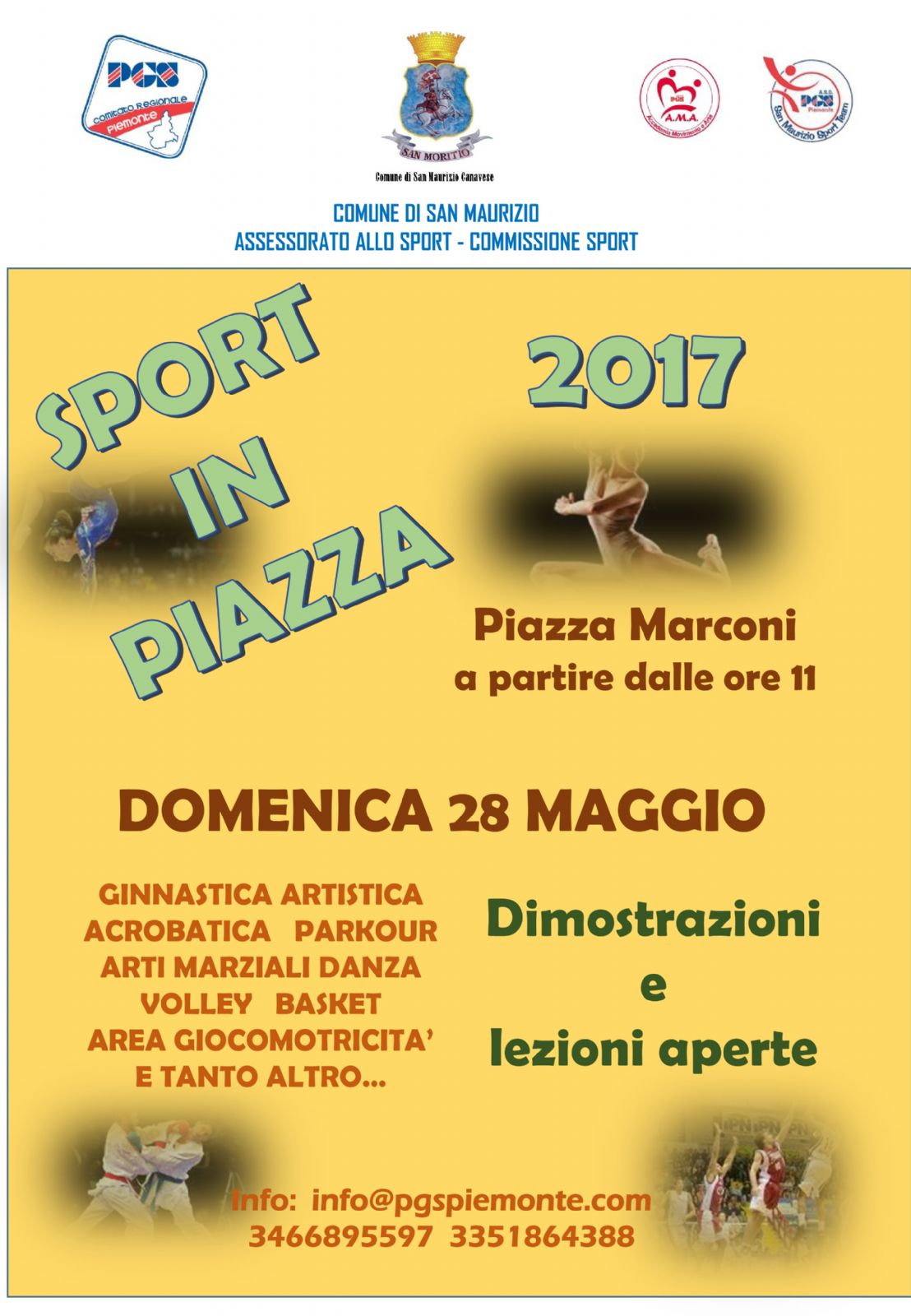 Si svolgerà domenica 28 maggio la giornata dello “Sport in piazza”, organizzata dal Comune di San Maurizio Canavese – Assessorato allo Sport e Commissione Sport – per coinvolgere nell'attività sportiva tutta la comunità. La giornata prevede dimostrazioni e lezioni aperte di ginnastica artistica, acrobatica, parkour, arti marziali, danza, volley, basket, giocomotricità e tanto altro. L'appuntamento è in piazza Marconi a partire dalle ore 11. La manifestazione è gratuita e aperta a tutti.