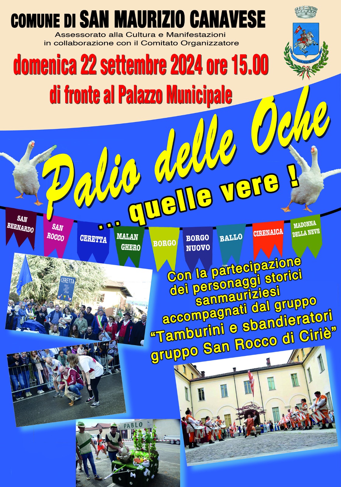 Sarà come sempre l'evento culminante della festa patronale: appuntamento a domenica 22 settembre per il tradizionale Palio delle Oche a cura dell'assessorato a Cultura e Manifestazioni in collaborazione con il Comitato Organizzatore. Si comincia alle ore 15 di fronte al municipio, con la partecipazione dei personaggi storici di San Maurizio Canavese e dei Tamburini e Sbandieratori di San Rocco di Ciriè.