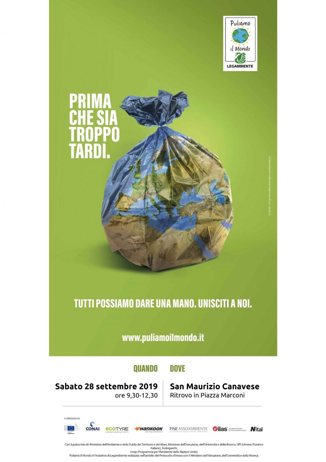 Anche il Comune di San Maurizio Canavese partecipa a “Puliamo il mondo” di Legambiente, edizione italiana di Clean up the World, il più grande appuntamento di volontariato ambientale del mondo. L'obiettivo, com'è noto, è ripulire parchi, giardini, fiumi, strade e piazze delle nostre città, coinvolgendo volontari di ogni età, adulti e bambini, che si ritrovano insieme per un gesto pratico e di grande utilità, ma ancor più simbolico e dal forte valore di sensibilizzazione nei confronti dell'intera comunità.