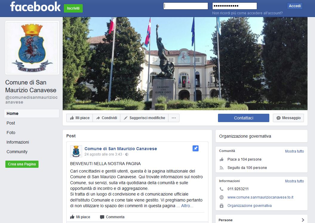 L'indirizzo è www.facebook.com/comunedisanmauriziocanavese e il nome utente è @comunedisanmauriziocanavese. Oltre a consultare le informazioni e le notizie pubblicate, attraverso la pagina Facebook i cittadini potranno anche inviare le loro segnalazioni direttamente all'URP del Comune cliccando sul tasto “Contattaci”.