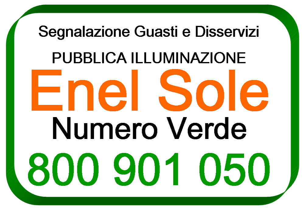 Arrivano spesso, in Municipio, telefonate di cittadini che segnalano guasti alla pubblica illuminazione, come lampade bruciate o lampioni spenti. Sono informazioni preziose, per le quali ringraziamo la gentilezza e la solerzia di chi ci contatta. Tuttavia, invitiamo i cittadini a segnalare il guasto non telefonando in Municipio ma chiamando direttamente il numero verde gratuito di Enel Sole 800.90.10.50 e comunicando il numero di matricola del lampione guasto o, in alternativa, la via e il numero civico all'altezza del quale esso si trova. In questo modo si evita un passaggio e si accelera il percorso: gli Uffici Comunali, infatti, una volta ricevuta la segnalazione dei cittadini, non possono far altro che chiamare a loro volta lo stesso numero verde.