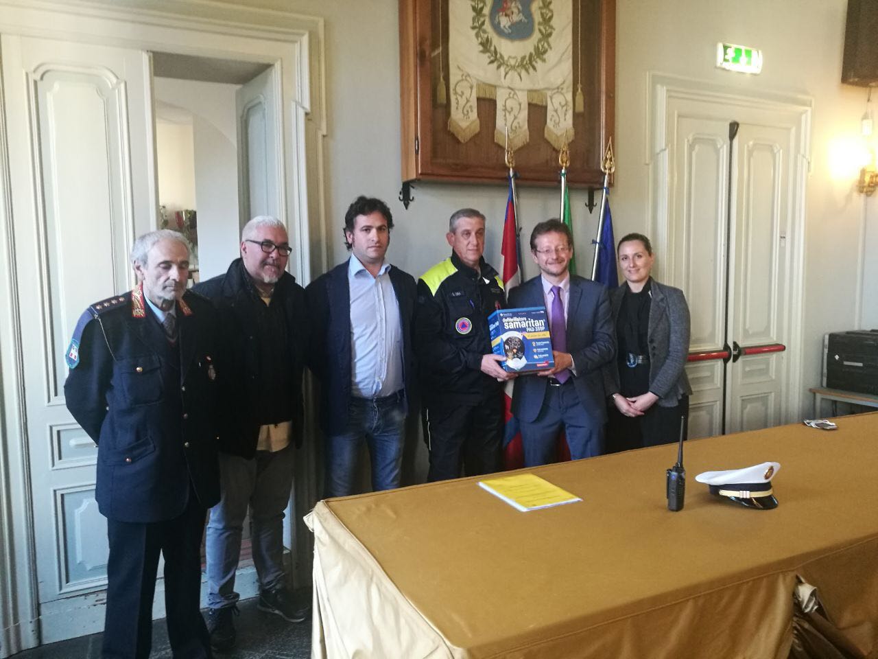 Nei giorni scorsi, con una breve ma significativa cerimonia, è stato ufficialmente consegnato un defibrillatore al Gruppo di Protezione Civile di San Maurizio Canavese. La speciale apparecchiatura sarà posizionata sulla vettura del Gruppo. Si tratta di una dotazione molto importante per la comunità, dal momento che i volontari della Protezione Civile sanmauriziese sono sempre presenti alle manifestazioni di interesse pubblico, pronti ad intervenire per ogni evenienza. A loro va il ringraziamento del Comune per la preziosa attività svolta. Un ringraziamento particolare, inoltre, al dottor Antonio Padua che ha gratuitamente formato i volontari.