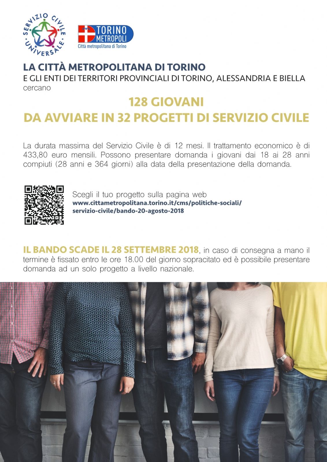 Potete trovare tutte le informazioni dettagliate – moduli e modalità per la presentazione della domanda, mansioni specifiche, assegno mensile ecc. – nei documenti allegati all'avviso del 28 agosto: https://www.comune.sanmauriziocanavese.to.it/it-it/avvisi/2018/servizio-civile-per-i-giovani-tra-18-e-28-anni-domande-entro-il-28-settembre-95309-1-24c54a8ab3da72ccb1a6b507072d9c4c