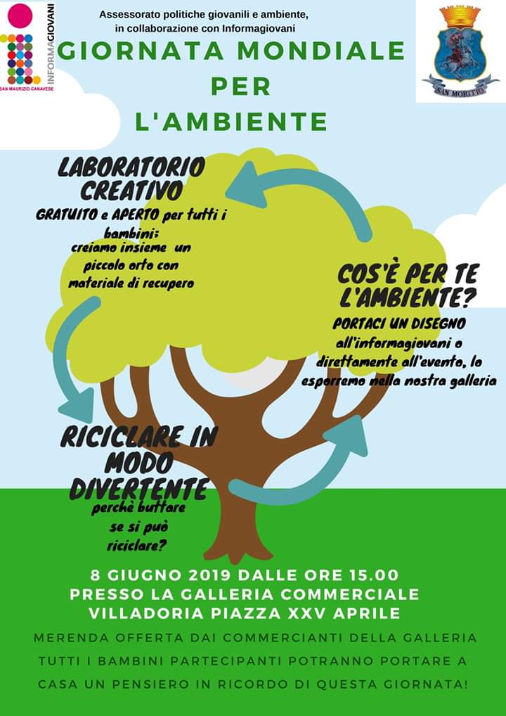 Sabato 8 giugno, in occasione della Giornata mondiale dell'Ambiente, presso la galleria Villadoria di piazza XXV Aprile si volgerà un laboratorio creativo dedicato ai bambini: “Creiamo insieme un piccolo orto con materiale di recupero”. È un'iniziativa dell'assessorato alle Politiche Giovanili e Ambiente del Comune in collaborazione con l'Informagiovani. I bambini creeranno un piccolo orto da portare a casa, ma soprattutto lasceranno un segno tangibile alla comunità sanmauriziese, colorato e fiorito, realizzando una speciale aiuola nel parco retrostante la galleria, vicino alla panchina rossa. L'appuntamento è alle ore 15 e il laboratorio, naturalmente, è gratuito. I commercianti della galleria offriranno la merenda ai piccoli “ortolani”.