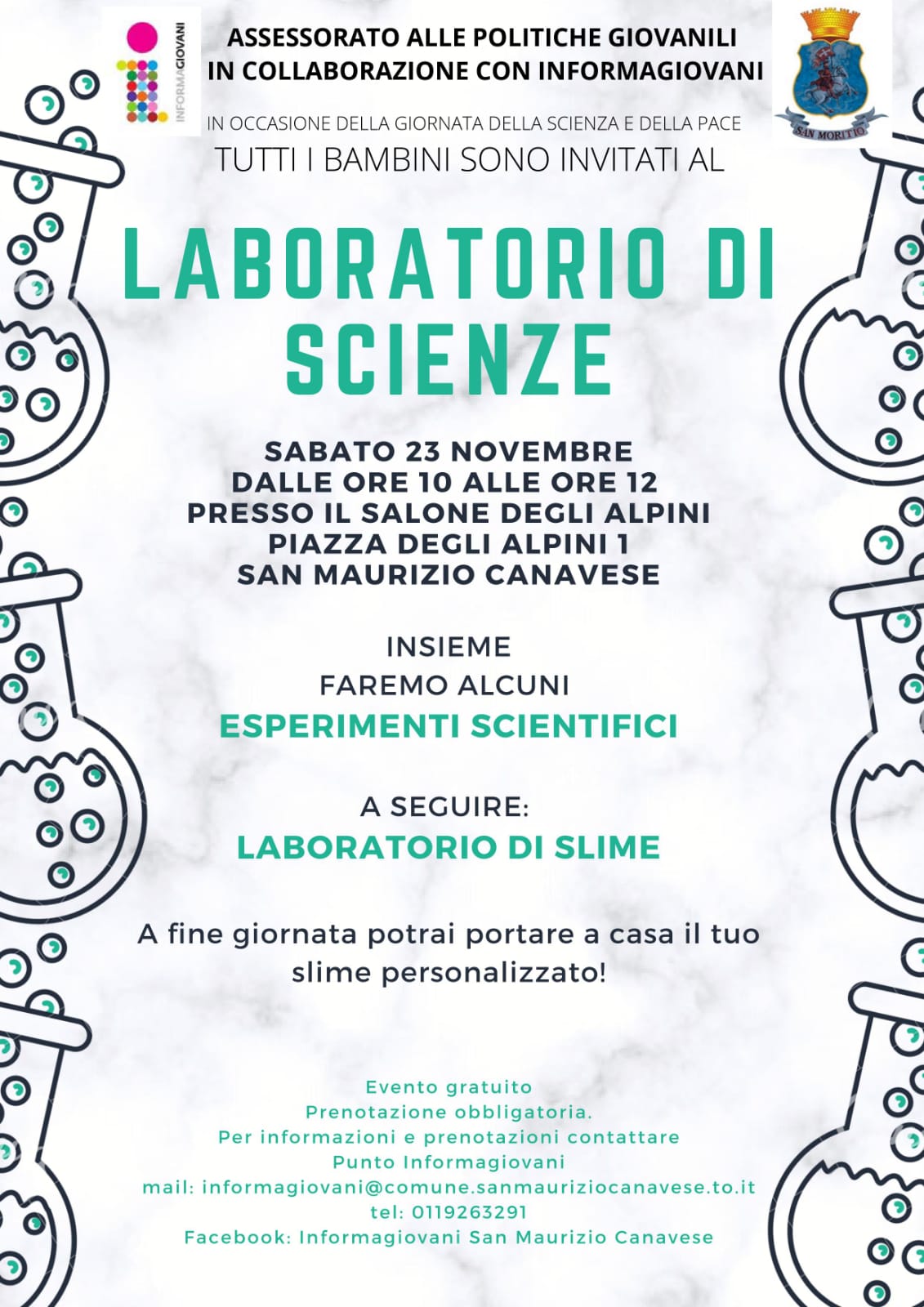 E dopo la scienza, la creatività: la mattinata si chiuderà con un divertente laboratorio di slime e i piccoli partecipanti potranno portare a casa il propio slime personalizzato. La partecipazione è gratuita, ma i posti sono limitati, quindi è necessario prenotare scrivendo a informagiovani@comune.sanmauriziocanavese.to.it o telefonando al numero 011.9263291.