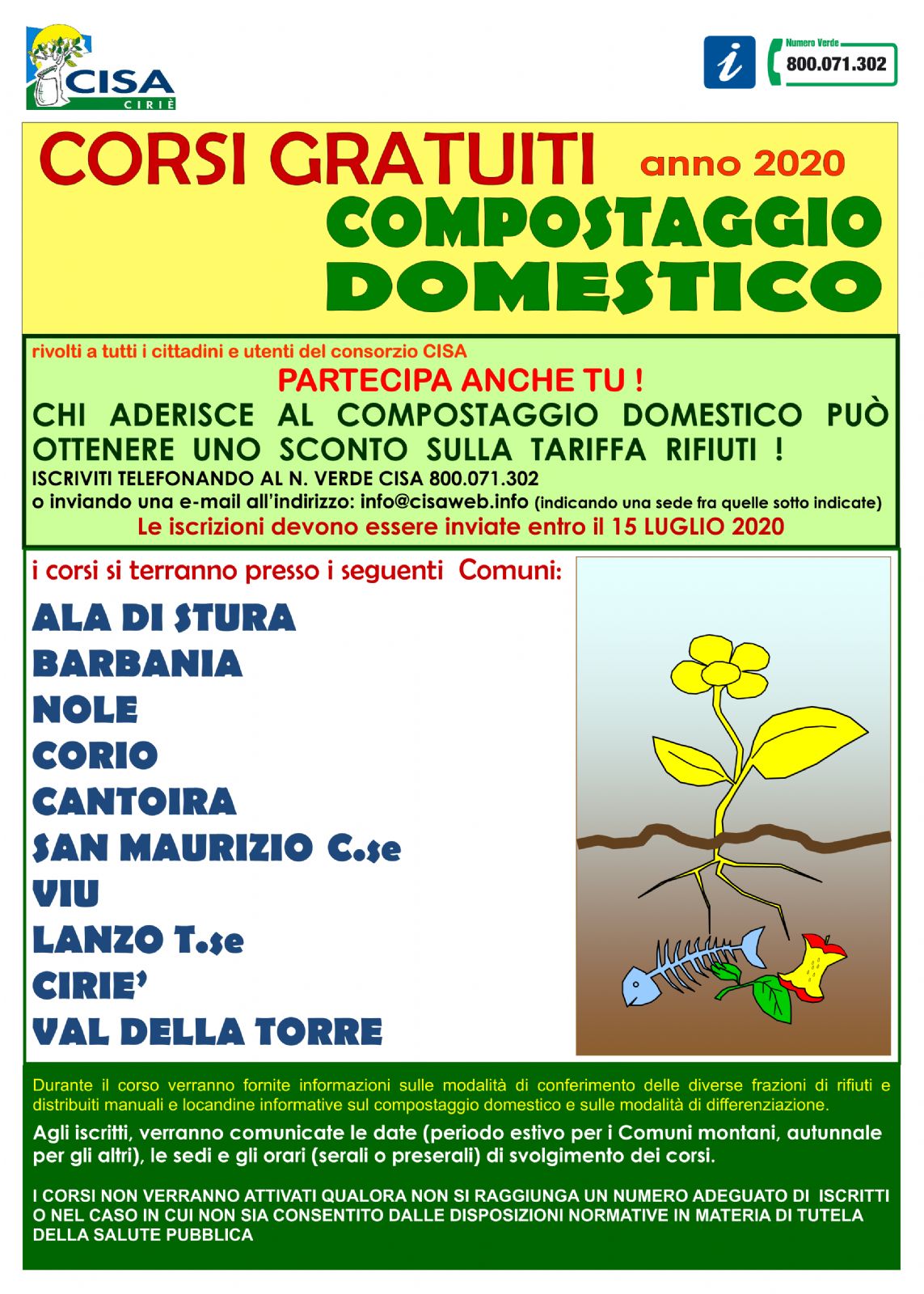 C'è tempo fino al 15 luglio per iscriversi al corso di compostaggio domestico che si svolgerà anche a San Maurizio Canavese a partire da settembre. Iscrizioni al numero verde del Cisa 800.071.302 o via email a info@cisaweb.info