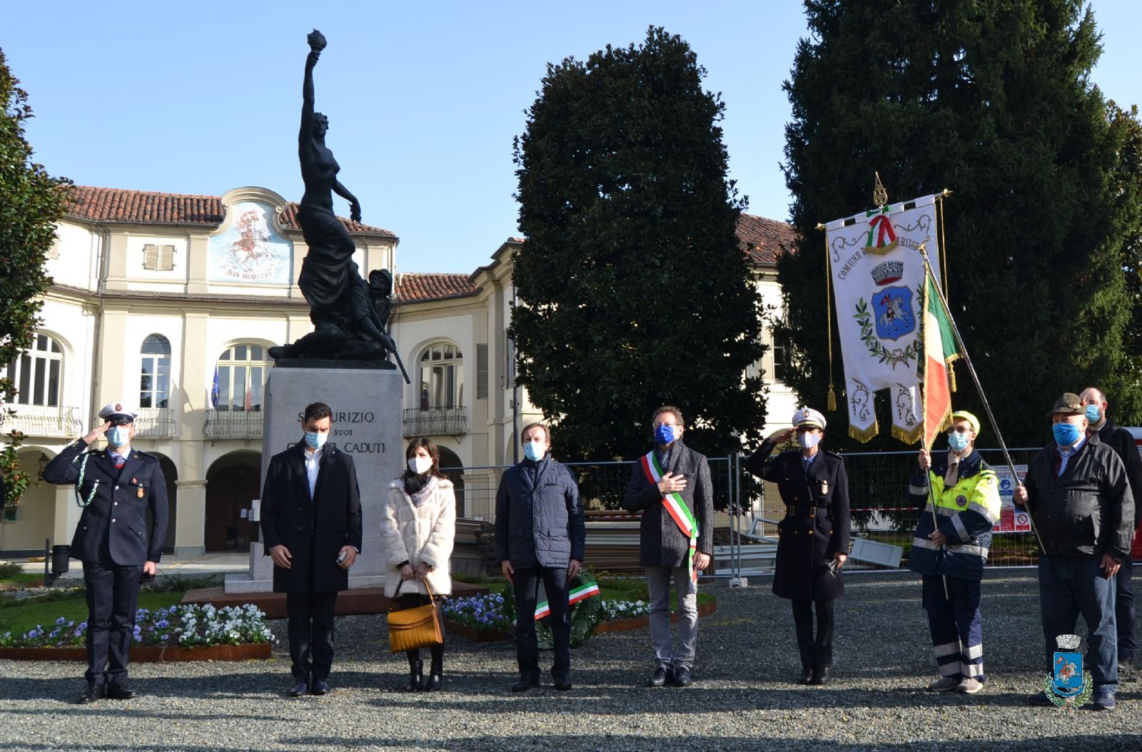 È stata celebrata questa mattina, sabato 7 novembre, la Festa dell'Unità nazionale nel nostro Comune. Si è trattato naturalmente di una cerimonia molto sobria e senza pubblico, nel rispetto delle misure di contenimento del contagio. Ma era importante non lasciar scivolare via questa ricorrenza senza ricordare quella che è stata una tappa fondamentale nella storia del nostro Paese e senza commemorare i Caduti della tragedia che fu la Grande Guerra. Molto più di un simbolo: un desiderio di unirci e di consolidare valori comuni, sia pure con gesti semplici. Il sindaco Paolo Biavati e la Giunta comunale al completo hanno rappresentato la nostra comunità presenziando all'alzabandiera, alla posa di corone d'alloro nel Viale della Rimembranza e ai piedi della stele dei Caduti all'interno del cimitero. La messa nella Chiesa Vecchia ha chiuso le celebrazioni.