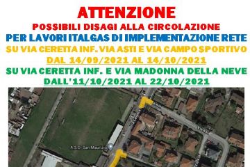 Lavori per l'estensione della rete gas nell'area di via Ceretta Inferiore fino al 22 ottobre
