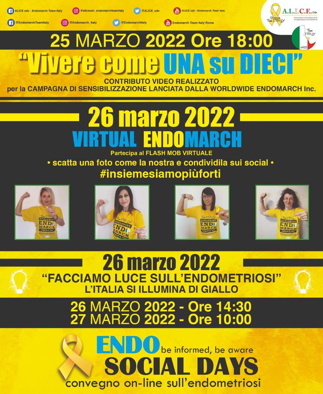 Per informazioni, oltre che per conoscere le iniziative di sensibilizzazione organizzate in questi giorni, possiamo consultare la pagina Facebook @EndomarchTeamItaly.