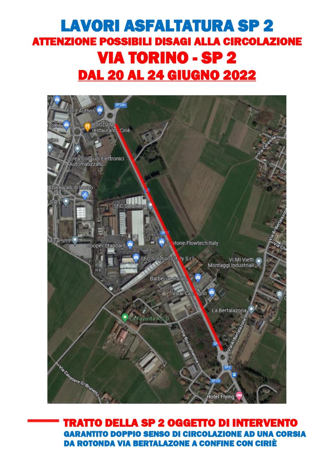 Attenzione alla viabilità sulla Sp2, la prossima settimana. Da lunedì 20 a venerdì 24 giugno, salvo maltempo e imprevisti, la Città Metropolitana realizzerà lavori stradali che potrebbero creare qualche disagio alla circolazione. In particolare, è prevista la riasfaltatura della corsia in direzione Ciriè, dalla rotonda di via Bertalazone a quella della circonvallazione (via don Sturzo) al confine con il Comune di Ciriè.