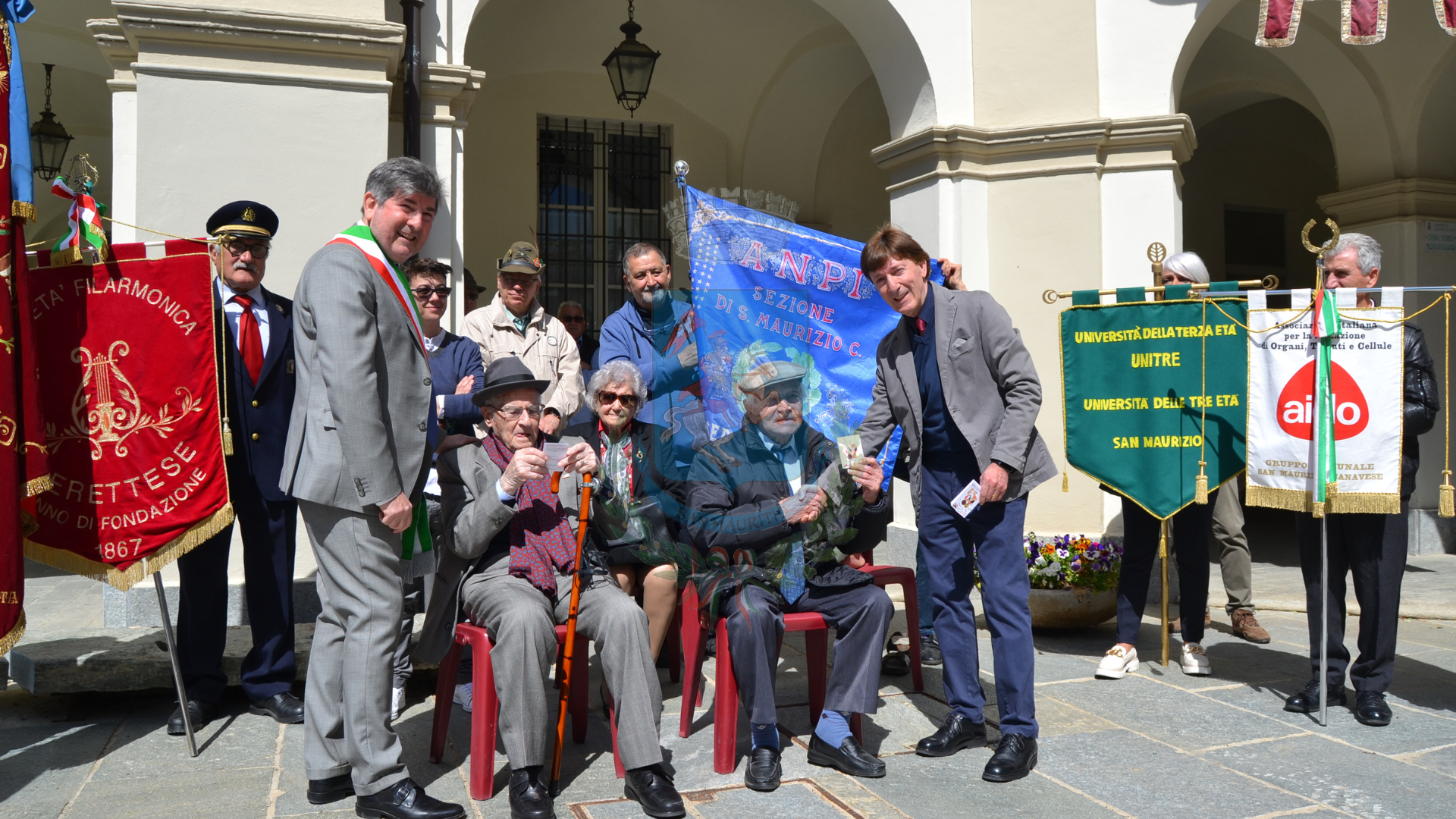 Particolarmente toccante, dopo l'orazione del primo cittadino, la consegna delle tessere Anpi ai partigiani Primo Amadio, Francesco Perino e ai nipoti di Bruno Tuscano, fucilato a San Maurizio Canavese il 24 gennaio 1945, medaglia d’oro al valor civile alla memoria.