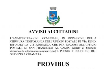 Servizio Provibus per l'Ufficio Postale di San Francesco al Campo