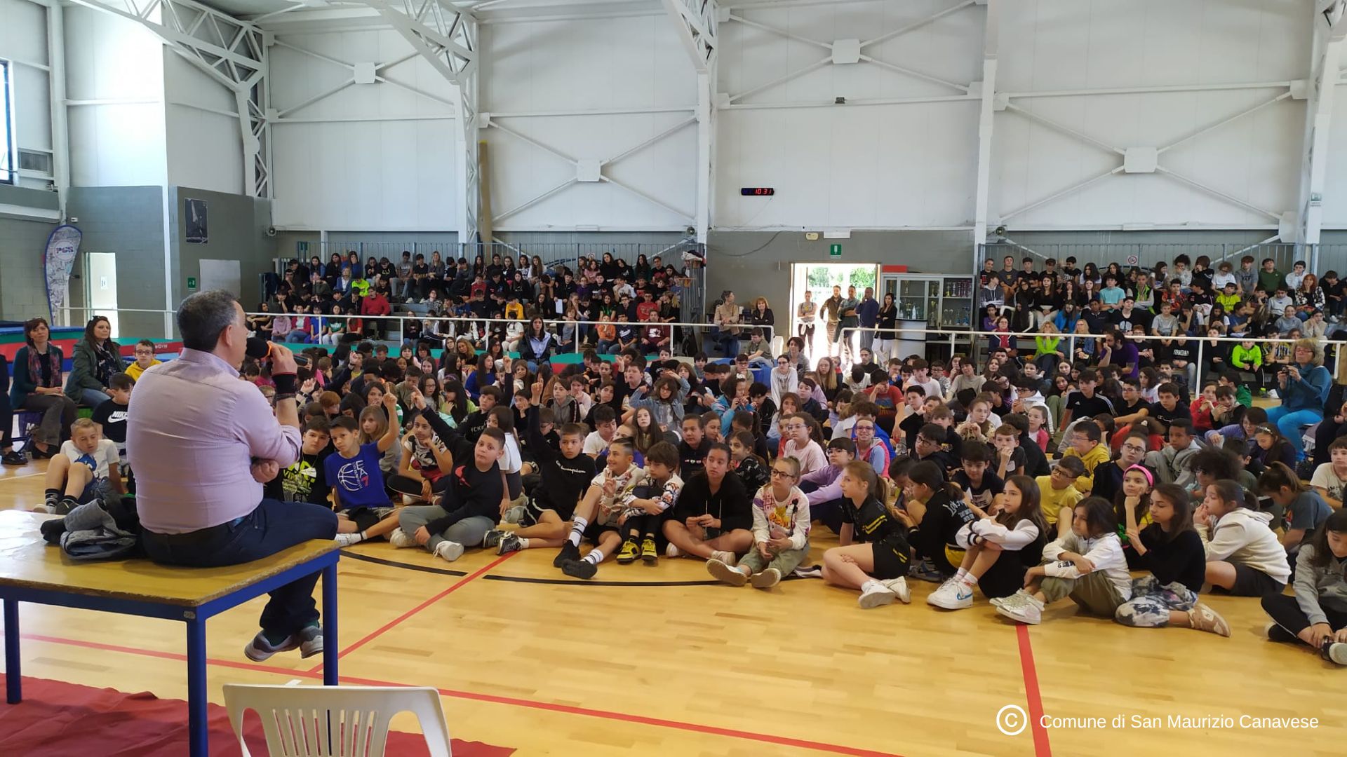 Ma il momento clou di questa indimenticabile due-giorni si è consumato questa mattina nel palazzetto dello sport di via Ceretta Inferiore, dove Angelo Corbo ha incontrato i bambini e i ragazzi delle scuole dell'Istituto comprensivo.