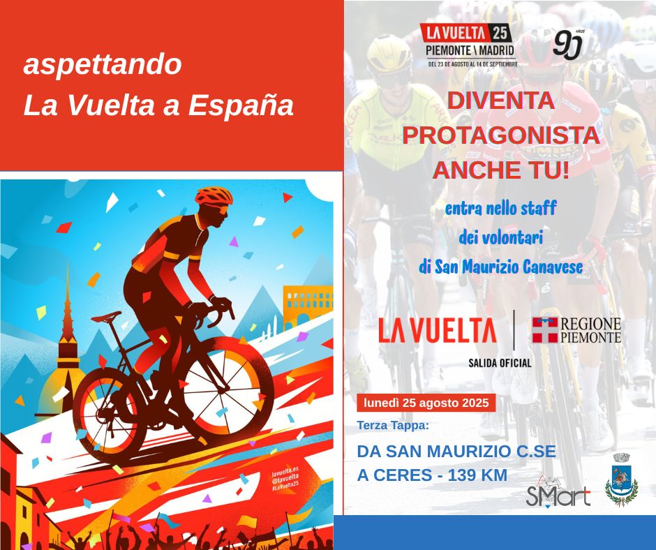 La partenza della terza tappa della Vuelta a España dalla nostra San Maurizio Canavese il prossimo 25 agosto sarà molto più che uno straordinario evento di sport e una grande vetrina internazionale per il territorio: sarà una festa per tutti noi. E allora viviamola insieme e alla grande!