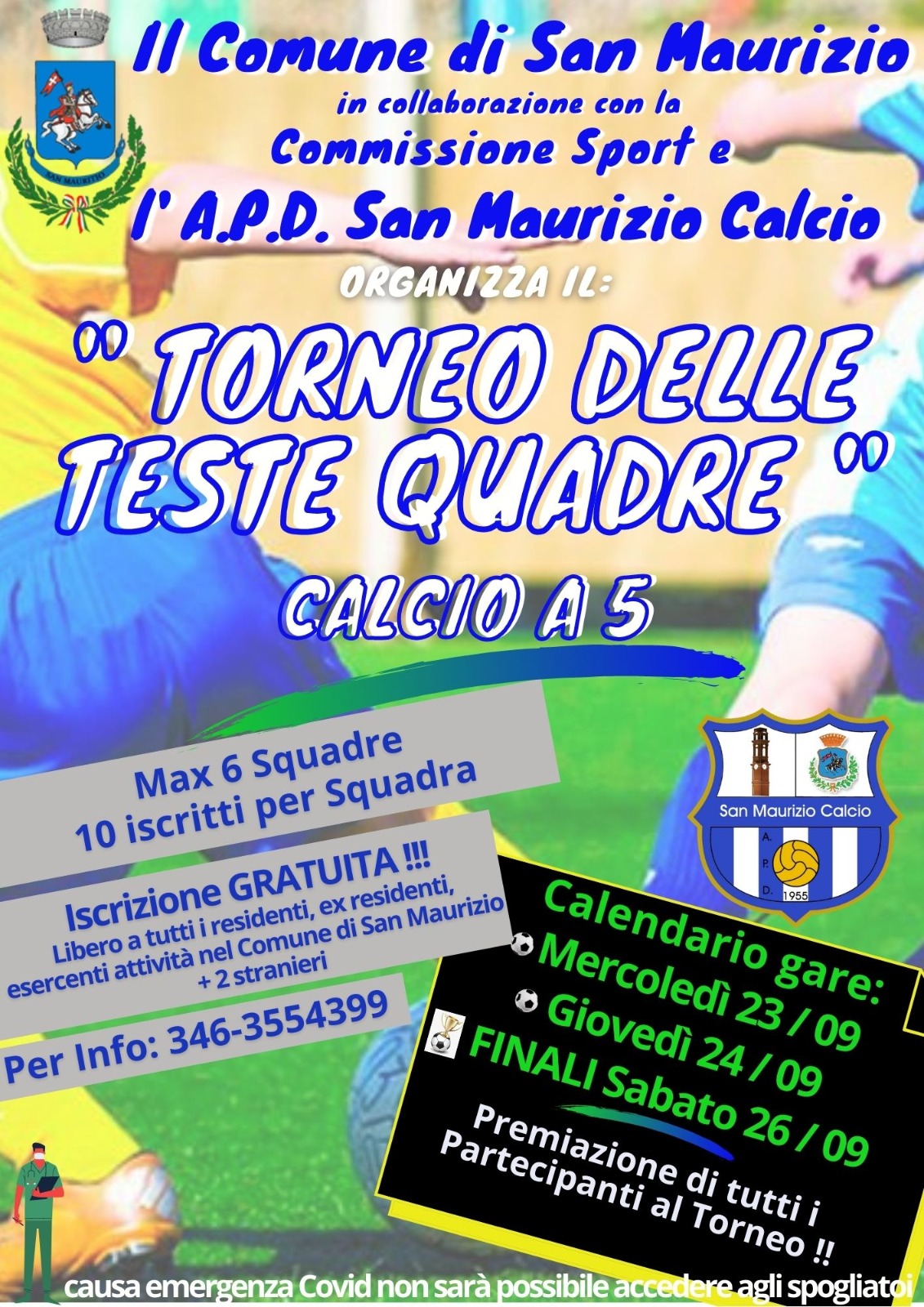 Dal 23 settembre il "Torneo delle Teste Quadre" organizzato dal Comune in collaborazione con la Commissione Sport e il San Maurizio Calcio.