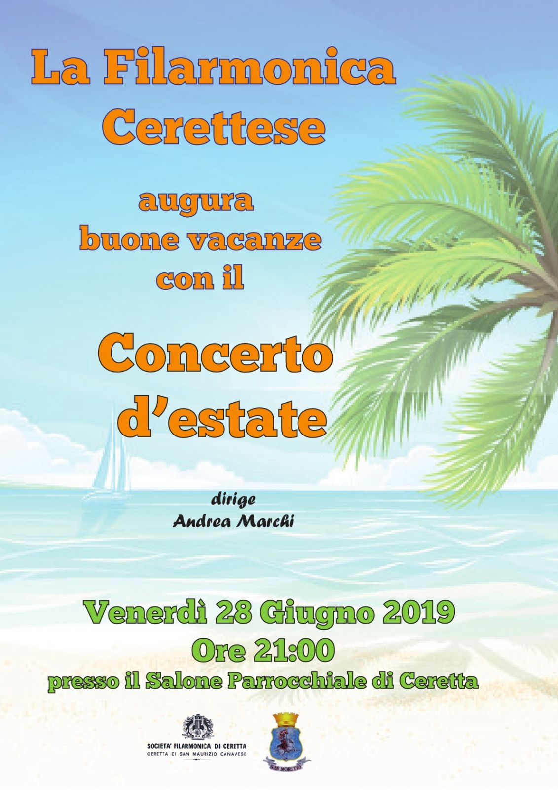 Venerdì 28 giugno, alle ore 21 nel salone parrocchiale di Ceretta, grande Concerto d'estate della Filarmonica Cerettese. Dirige il maestro Andrea Marchi.