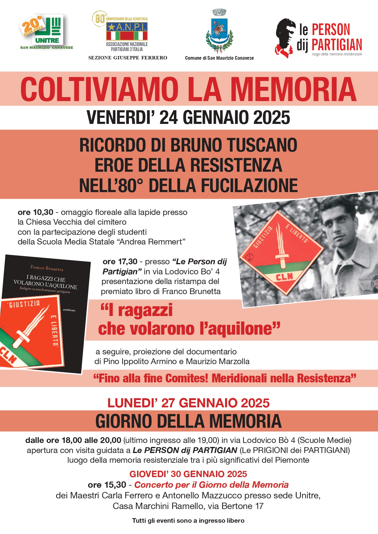 "Coltiviamo la Memoria": 24, 27 e 30 gennaio a San Maurizio Canavese. Una tre-giorni di eventi per non dimenticare.