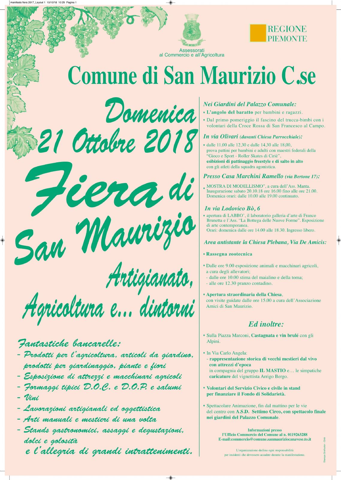 Segnatevi la data: domenica 21 ottobre! È il giorno del tradizionale appuntamento con la Fiera di San Maurizio "Artigianato, Agricoltura e dintorni", organizzata dagli Assessorati al Commercio e all'Agricoltura del Comune di San Maurizio Canavese, con il patrocinio della Regione Piemonte.