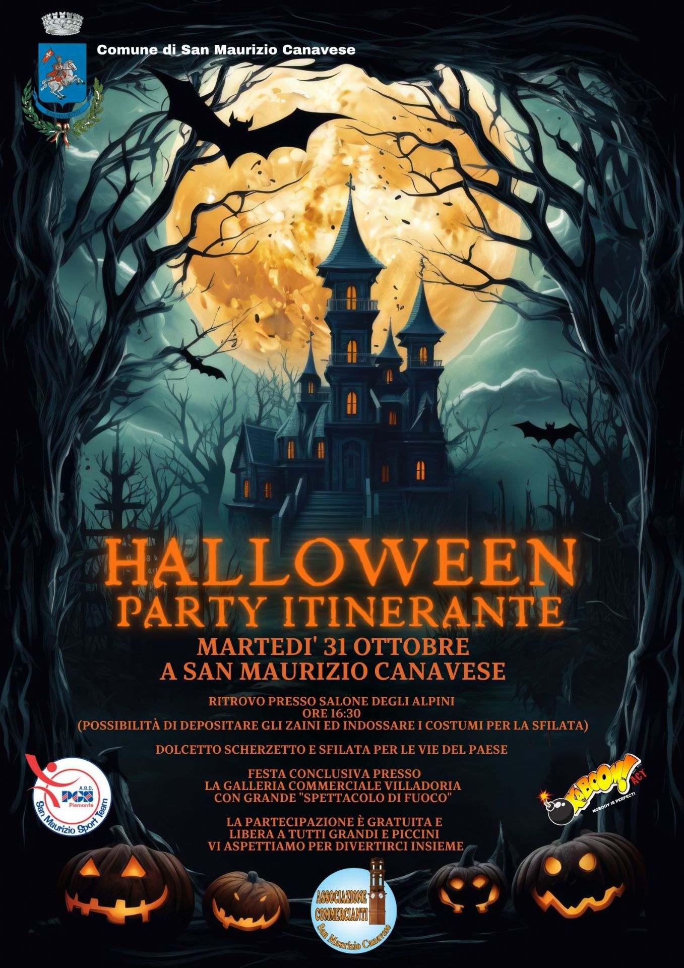 Un "party itinerante" per Halloween è la bella iniziativa che il Comune di San Maurizio Canavese in collaborazione con l'Associazione Commercianti e con la partecipazione del PGS San Maurizio Soprt Team propone per il pomeriggio di martedì 31 ottobre. L'appuntamento è alle ore 16,30 nella sede degli Alpini, dove gli alunni in uscita da scuola potranno lasciare zaini e cartelle (e indossare il costume!) e tornare a riprenderli una volta terminata la festa. Dalla piazza degli Alpini si partirà per un immancabile “dolcetto o scherzetto” per le vie del paese e si raggiungerà poi Villadoria per la festa finale e il grande "Spettacolo di fuoco" con gli artisti di Kaboom Act. L'invito, naturalmente, è a partecipare in maschera ed è rivolto a grandi e piccini.