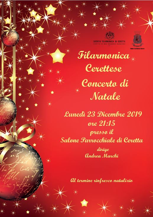 Lunedì prossimo, 23 dicembre, alle 21.15 nel salone parocchiale di frazione Ceretta, si svolgerà il tradizionale Concerto di Natale della Filarmonica Cerettese diretta dal maestro Andrea Marchi.
