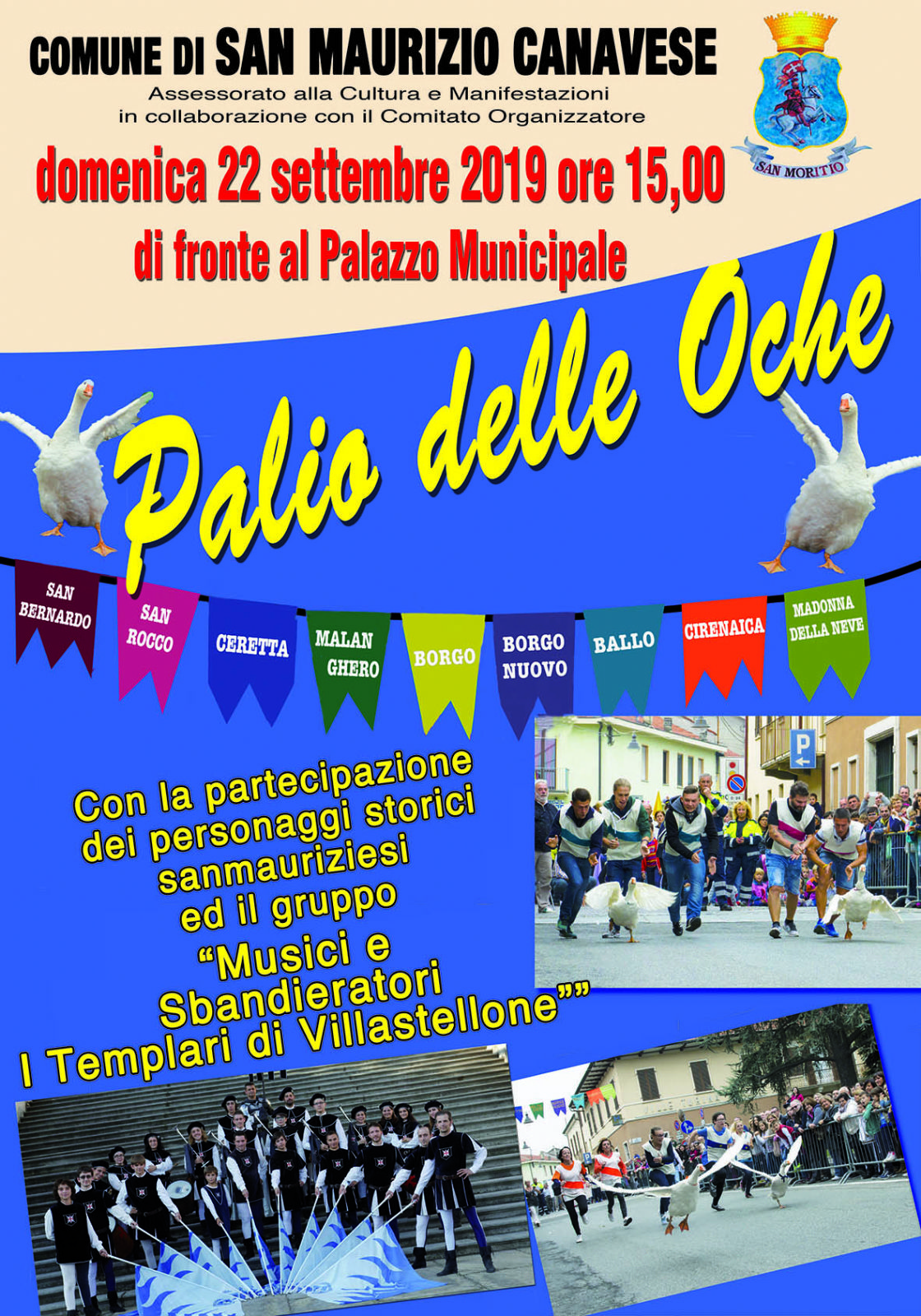 Non può certo mancare, l'attrazione principale della festa patronale di San Maurizio: l'ormai storico Palio delle Oche. L'appuntamento è per domenica 22 settembre, alle ore 15, di fronte al municipio.