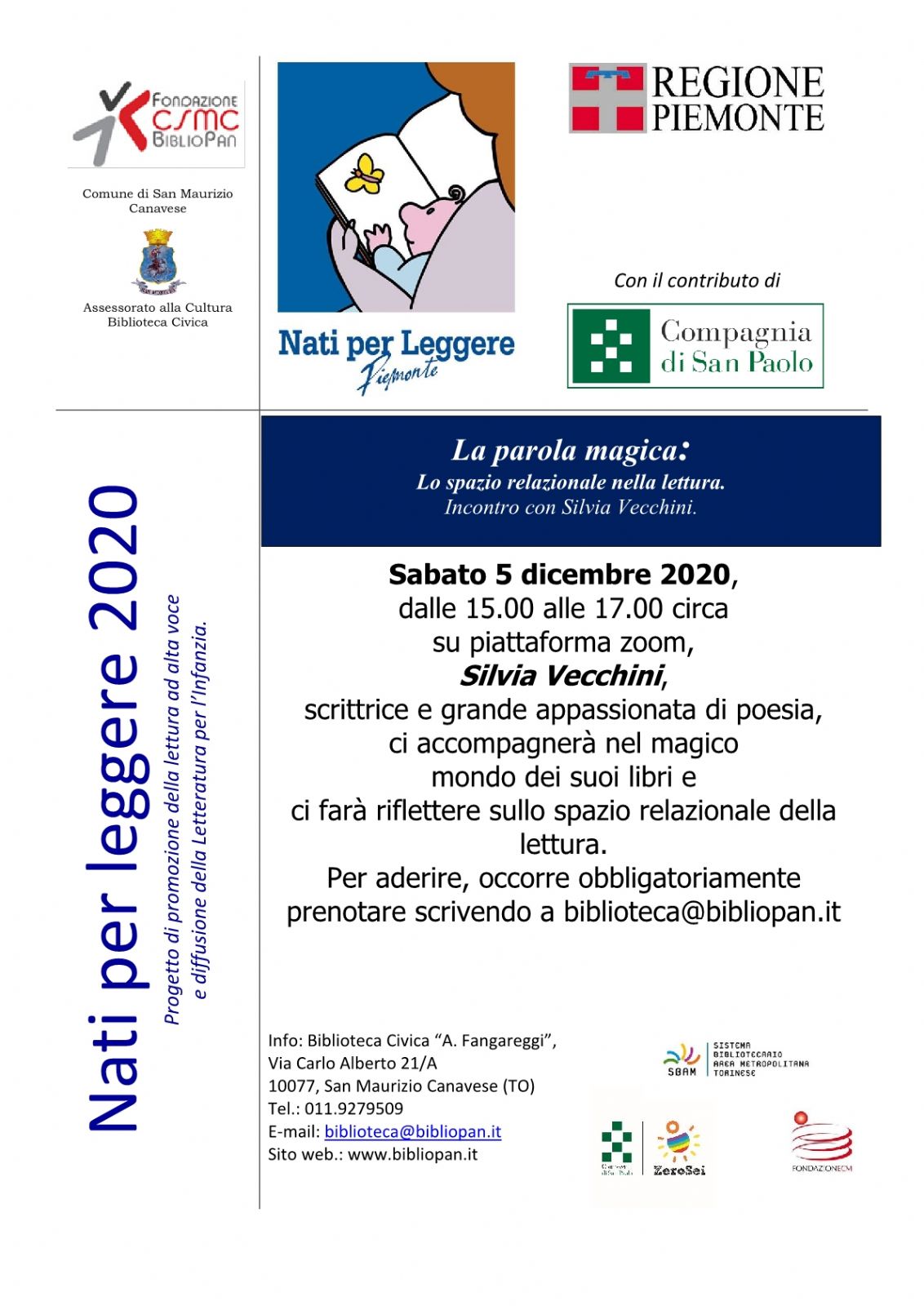 Nell’ambito del Progetto “Nati per Leggere 2020”, sabato 5 dicembre dalle 15 alle 17 su piattaforma Zoom si terrà una puntata speciale di “Incontro con l’Autore”.