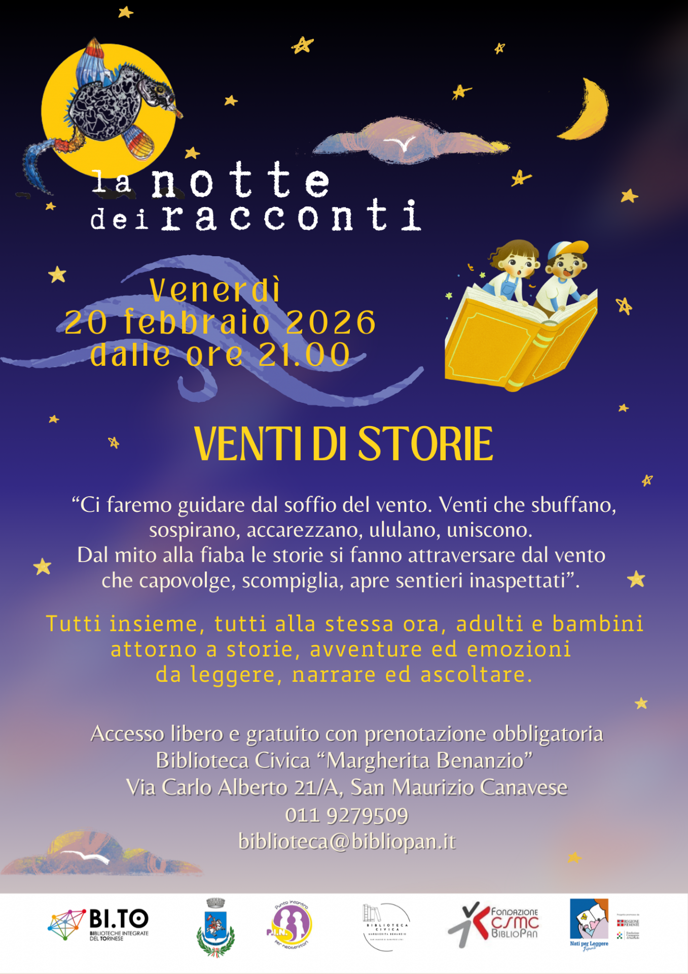 Una magica serata da trascorrere insieme, adulti e bambini, intorno a storie, avventure ed emozioni da leggere, narrare e ascoltare.