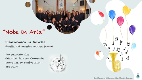La Filarmonica "La Novella" diretta dal maestro Andrea Scavini presenta "Note in aria". L'appuntamento per tutti è nei giardini del municipio domenica 20 ottobre alle ore 16.