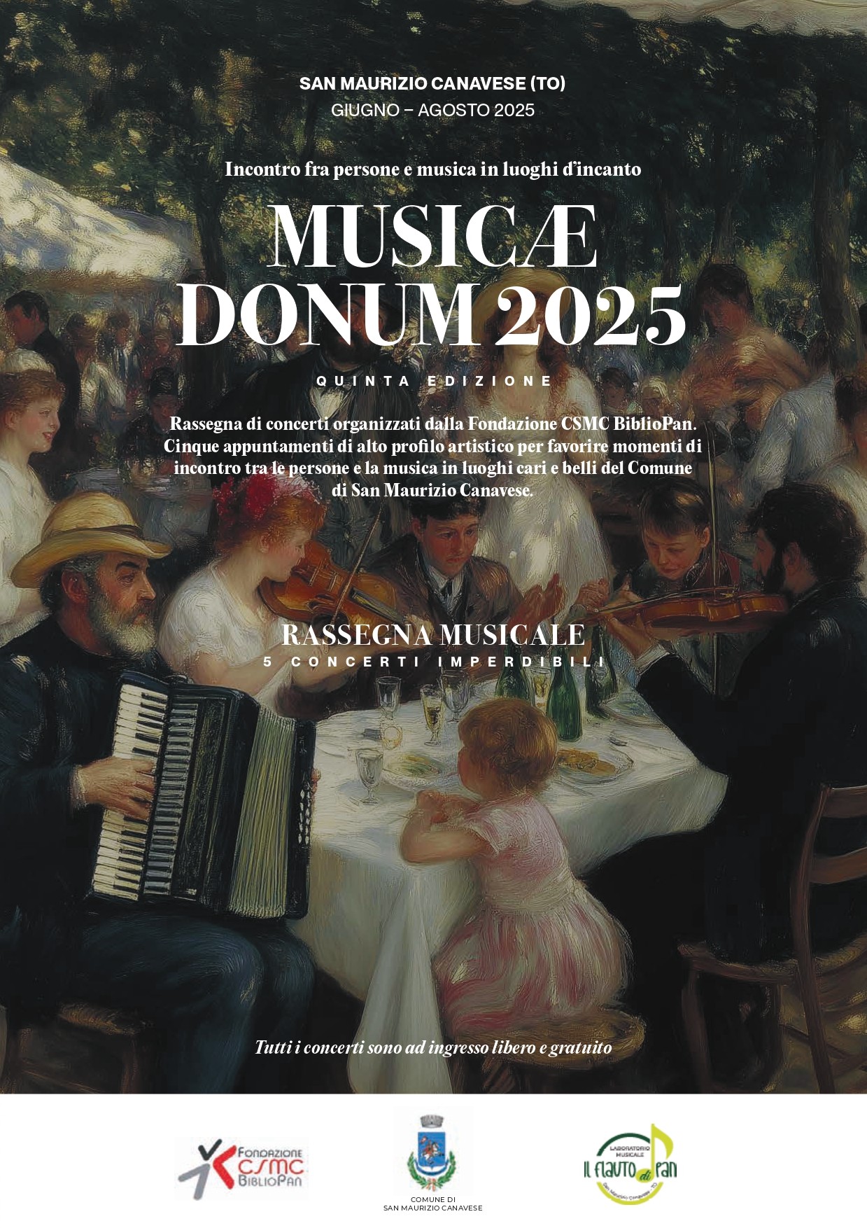 È tutto pronto per la quinta edizione Musicae Donum, la rassegna di concerti organizzata dalla Fondazione CSMC BilioPan e dall’Assessorato alla Cultura del Comune di San Maurizio Canavese.