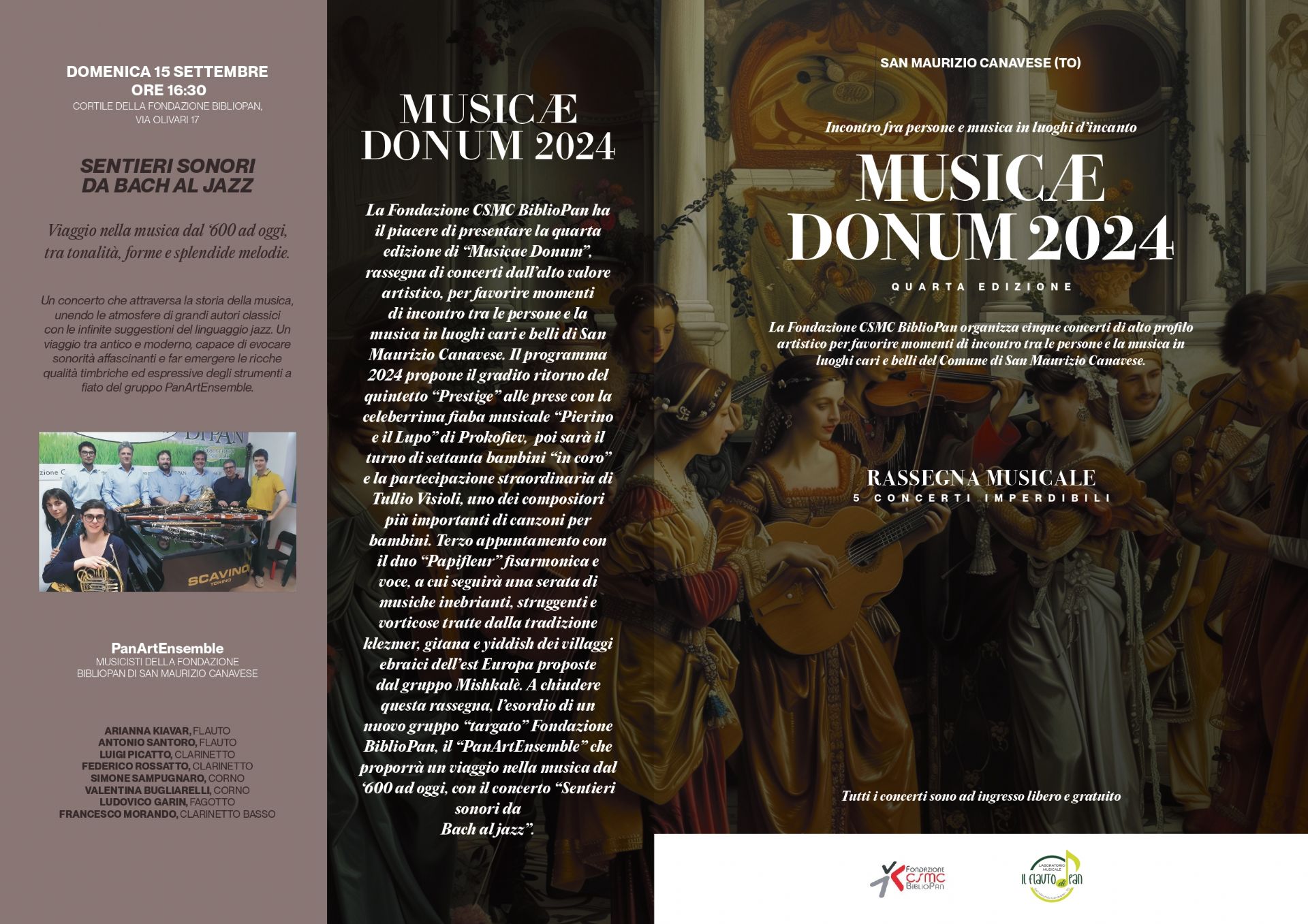 Il gruppo “PanArtEnsemble” proporrà un viaggio nella musica dal ‘600 ad oggi, con il concerto “Sentieri sonori da Bach al jazz”.