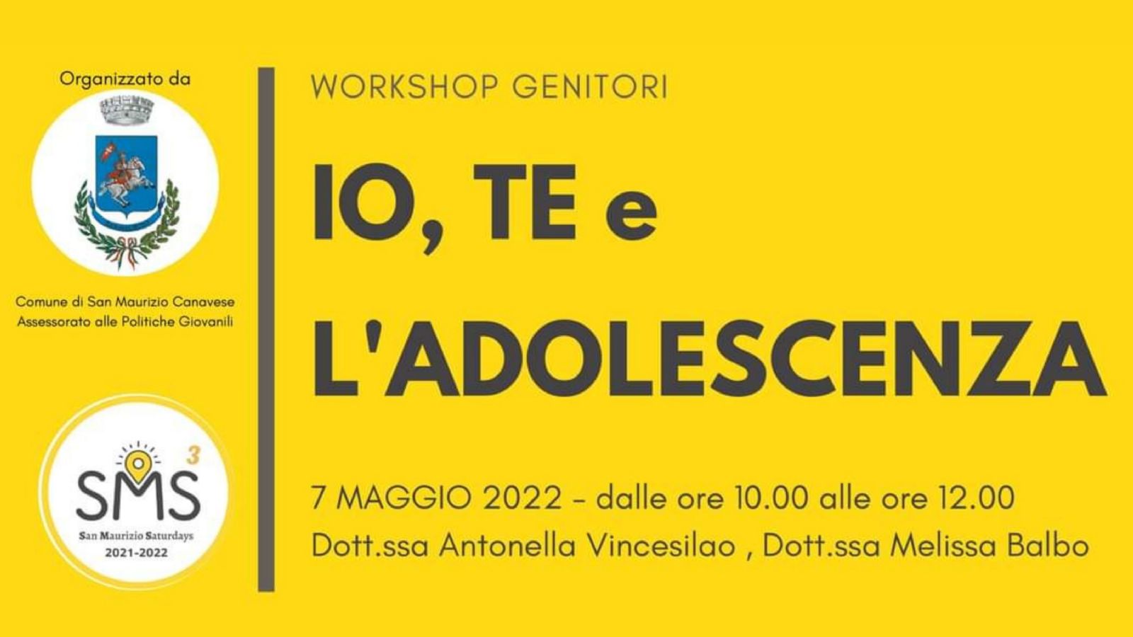 Sabato 7 maggio, nell'ambito di "SMS San Maurizio Saturdays", dalle 10 alle 12 a Casa Marchini Ramello avrà luogo il secondo incontro di "Io, te e l'adolescenza”, il Workshop organizzato per le famiglie dal Comune di San Maurizio Canavese. Sotto la guida esperta di due psicologhe, la dottoressa Antonella Vincesilao e la dottoressa Melissa Balbo, si parlerà, fre le varie tematiche, di come trasmettere ai figli il senso di autonomia e la capacità di "fare da soli", della gestione delle emozioni, dell'educazione all'affettività e di tante altre cose. La partecipazione è gratuita, basta iscriversi compilando questo modulo online.