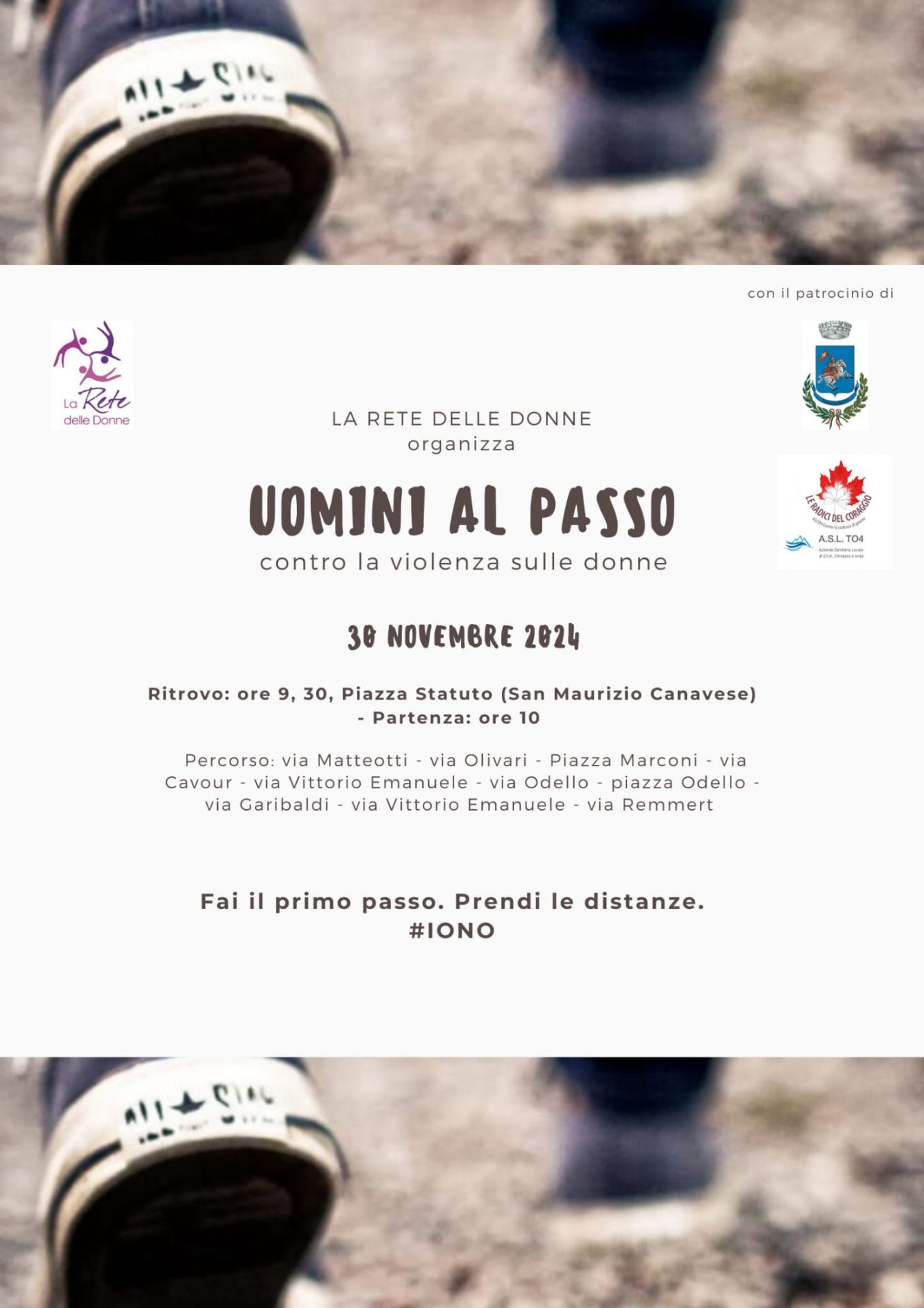 Sabato 30 novembre la Rete delle Donne organizza "Uomini al passo", una marcia per le vie del paese contro la violenza sulle donne. Ritrovo alle ore 9.30 in piazza Statuto, partenza alle 10.
