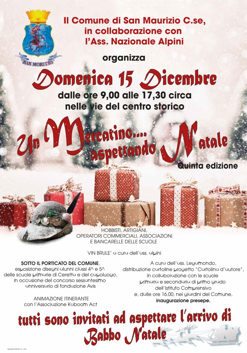 È tutto pronto per la quinta edizione di "Un mercatino... aspettando il Natale", la tradizionale iniziativa organizzata dal Comune di San Maurizio Canavese in collaborazione con l'associazione nazionale Alpini.