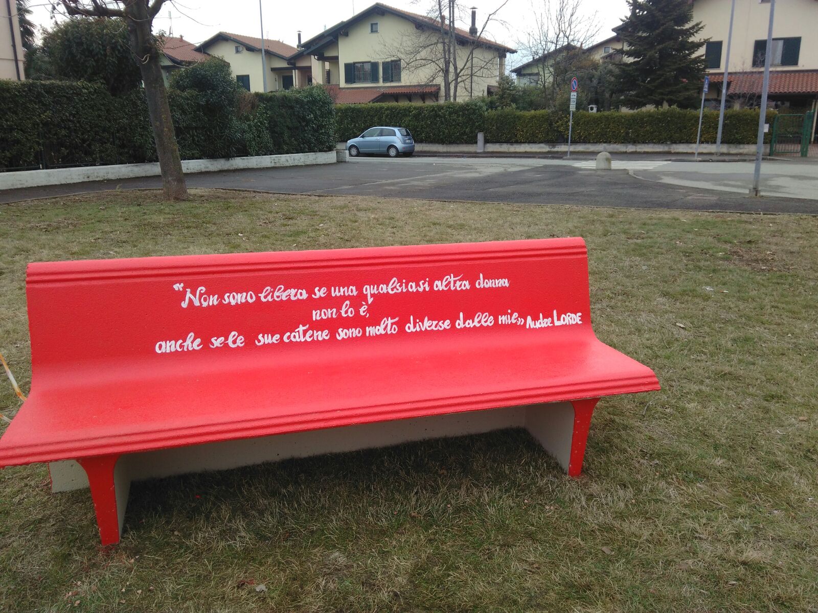 C'è una panchina rossa, da oggi, a San Maurizio Canavese. Si trova nell'area verde adiacente la galleria commerciale Villadoria, in un nuovo spazio dedicato a tutte le donne, con un albero di mimosa (che sarà piantato oggi dagli operatori comunali).