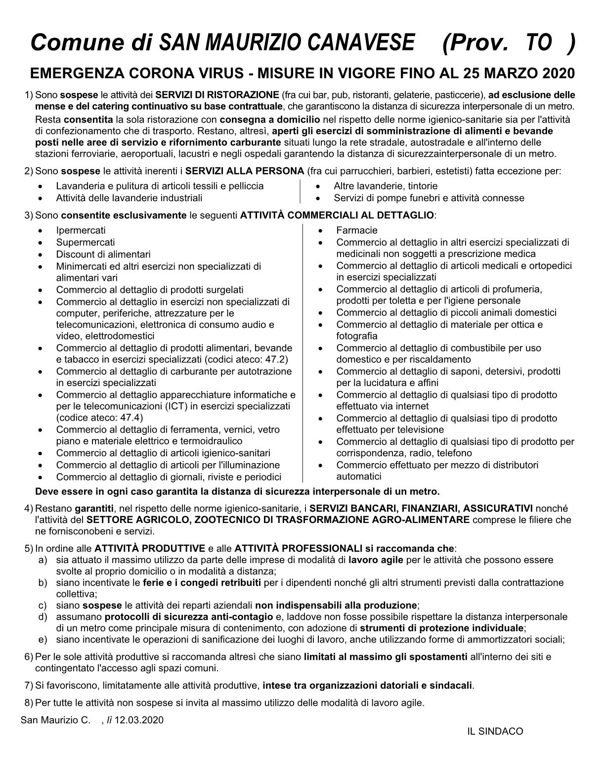 Nel file allegato e scaricabIle qui sotto, l'elenco dettagliato e completo delle nuove disposizioni per le attività commerciali, produttive e professionali, in vigore fino al 25 marzo.