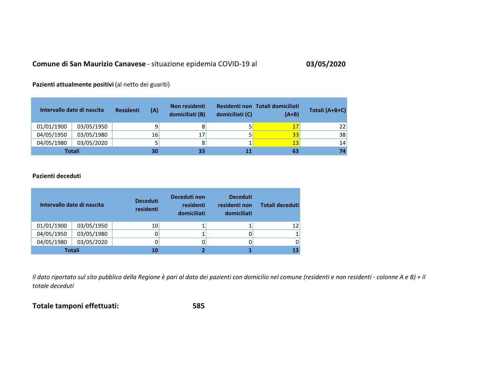 Purtroppo questa settimana dobbiamo registrare un nuovo decesso; si tratta di un concittadino non domiciliato in paese ma ospite di una residenza per anziani in un altro Comune. Ai suoi cari, le condoglianze e l'abbraccio della comunità di San Maurizio.