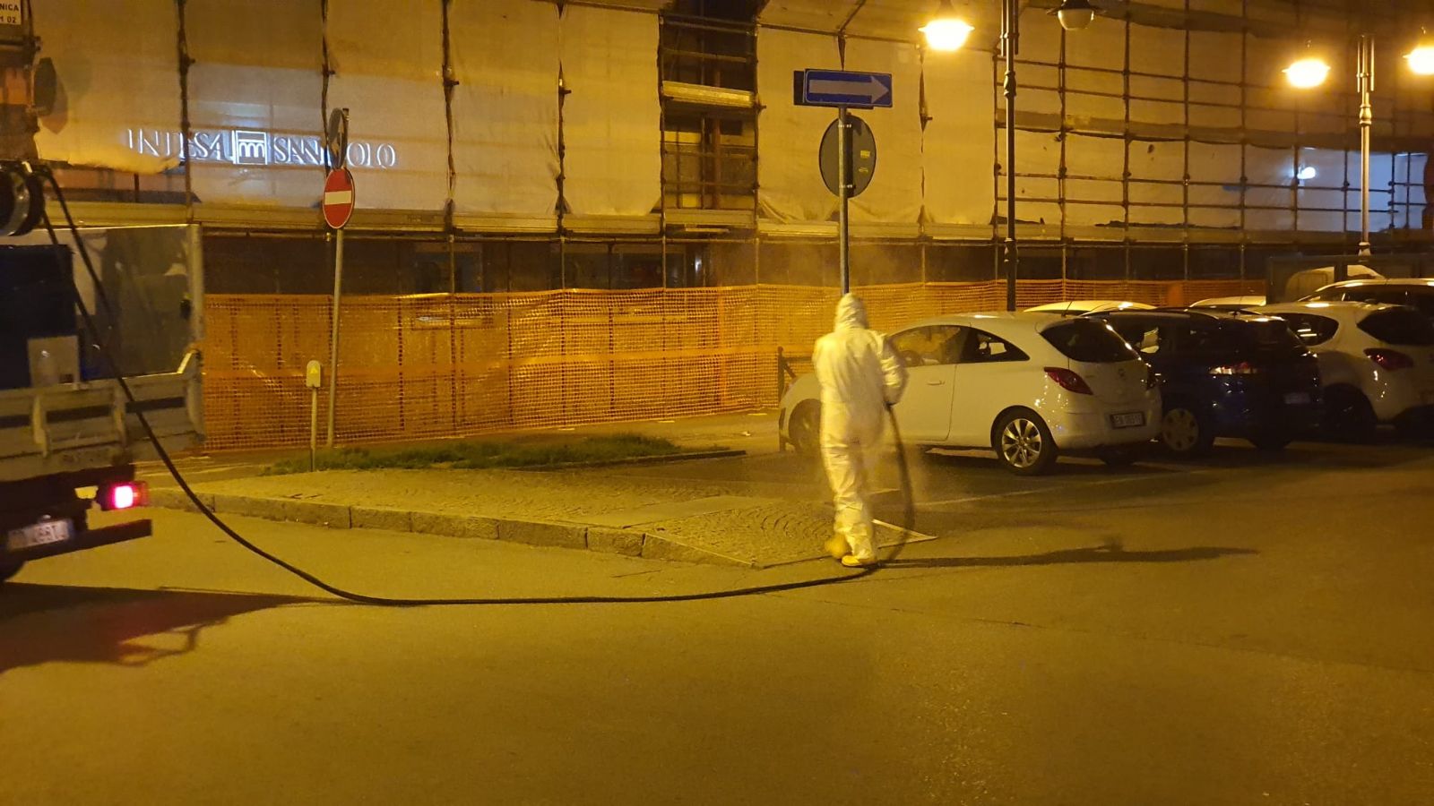 Dopodomani, mercoledì 8 aprile, tra le ore 20 e le ore 24 sarà attuato un nuovo intervento di igienizzazione degli arredi urbani nei punti nevralgici del paese e nelle aree maggiormente frequentate dai cittadini per l'accesso ai servizi essenziali. Come già avvenuto la scorsa settimana (intervento al quale si riferisce l'immagine), l'operazione sarà effettuata dal CISA, secondo la linea concordata con l'Unione dei Comuni del Ciriacese e del Basso Canavese. Salvo diverse disposizioni per ragioni organizzative, le sanificazioni successive saranno programmate sempre di mercoledì per tutto il mese di aprile.