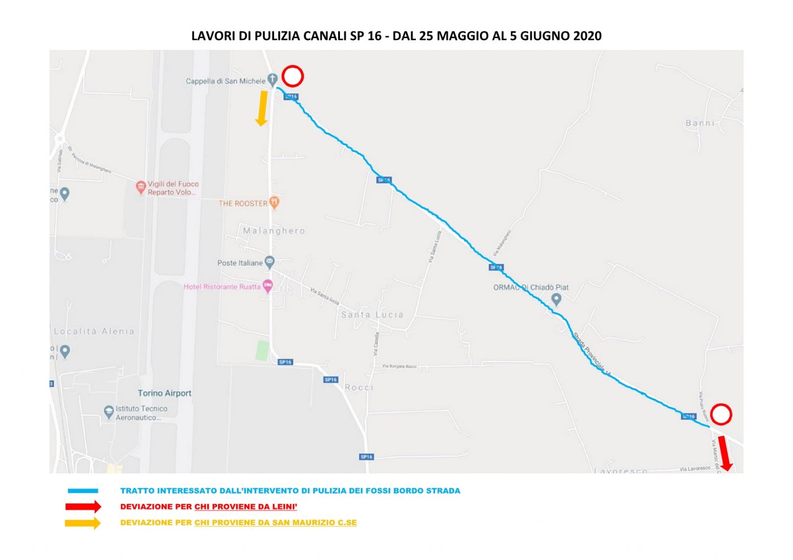 Da lunedì prossimo, 25 maggio, avrà inizio la pulizia dei canali lungo la strada provinciale sp16 che collega San Maurizio Canavese a Leinì.