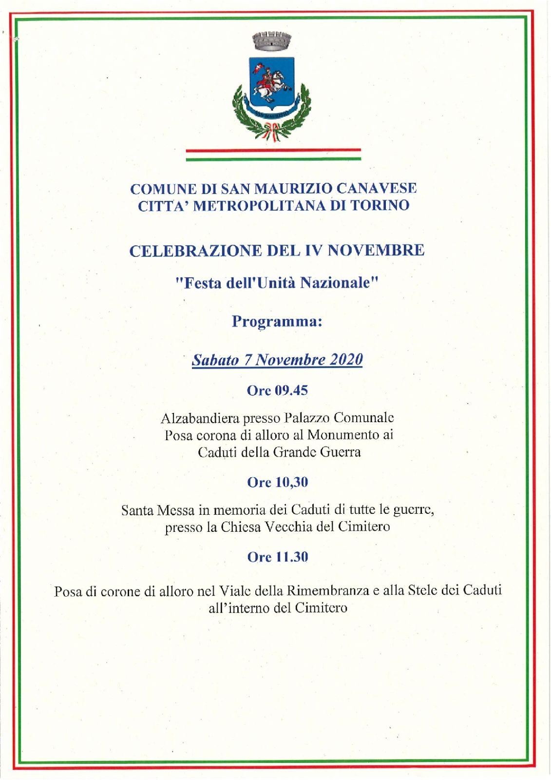 Sarà celebrata sabato 7 novembre, nel nostro Comune, la Festa dell'Unità nazionale. Come è facile immaginare, a causa della pandemia non ci sarà una manifestazione pubblica vera e propria. Semplicemente, le autorità cittadine commemoreranno i Caduti della Grande Guerra con l'alzabandiera davanti al municipio alle 9.45, la messa nella Chiesa Vecchia alle 10.30 e la posa di corone d'alloro nel Viale della Rimembranza e alla stele dei Caduti all'interno del cimitero. E lo faranno, naturalmente, a nome dell'intera comunità.