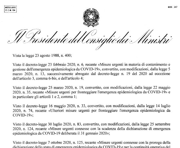 Le disposizioni contenute in questo decreto sono in vigore da oggi, sabato 16 gennaio, fino al 5 marzo, salvo diverse comunicazioni.