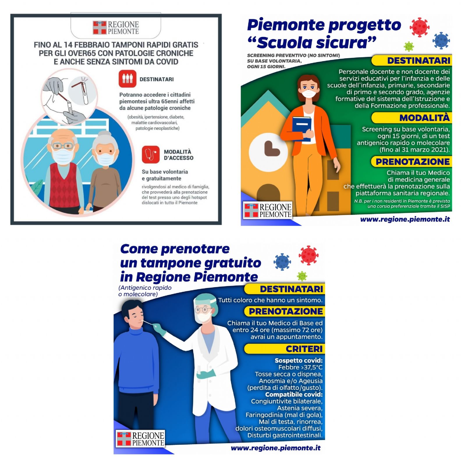 La Regione Piemonte ricorda tutte le possibilità di screening contro il Covid 19 attualmente attive per la popolazione: