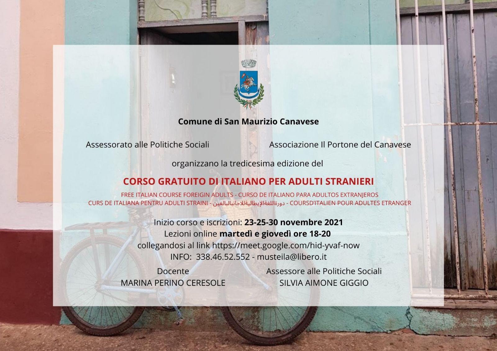 Al via la tredicesima edizione del Corso di Italiano per Stranieri, che anche quest'anno sarà in live streaming. Organizzato dall'Assessorato alle Politiche Sociali del Comune di San Maurizio Canavese in collaborazione con l'associazione Il Portone del Canavese, il corso (assolutamente gratuito) propone come sempre un programma multidisciplinare – oltre alla lingua italiana, anche usi, costumi, momenti ricreativi e sociali – per contribuire all'integrazione dei cittadini stranieri sul territorio e imparare, tutti quanti, a conoscerci meglio.