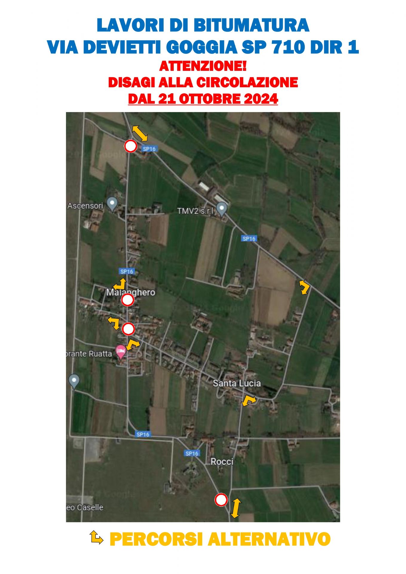 Partiranno lunedì 21 ottobre, meteo permettendo, i lavori per l'asfaltatura di via Devietti Goggia a Malanghero. Le operazioni creeranno inevitabilmente qualche disagio alla circolazione. Vi invitiamo a prestare la massima attenzione alla segnaletica e a utilizzare i percorsi alternativi indicati.